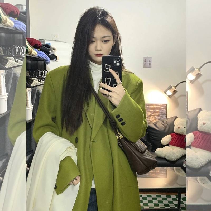 ZHOU ZIGE韩系赫本风呢子大衣2021年牛油果
