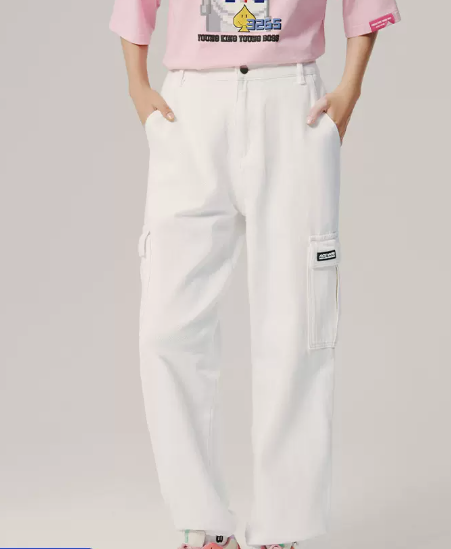 KT白色牛仔裤女时尚百搭宽松休闲四季款长裤