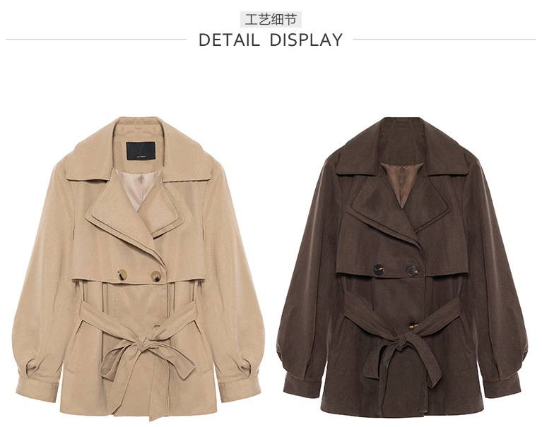 2019秋季新款品牌女装英伦气质纯色长袖西装领双排扣女式风衣外套