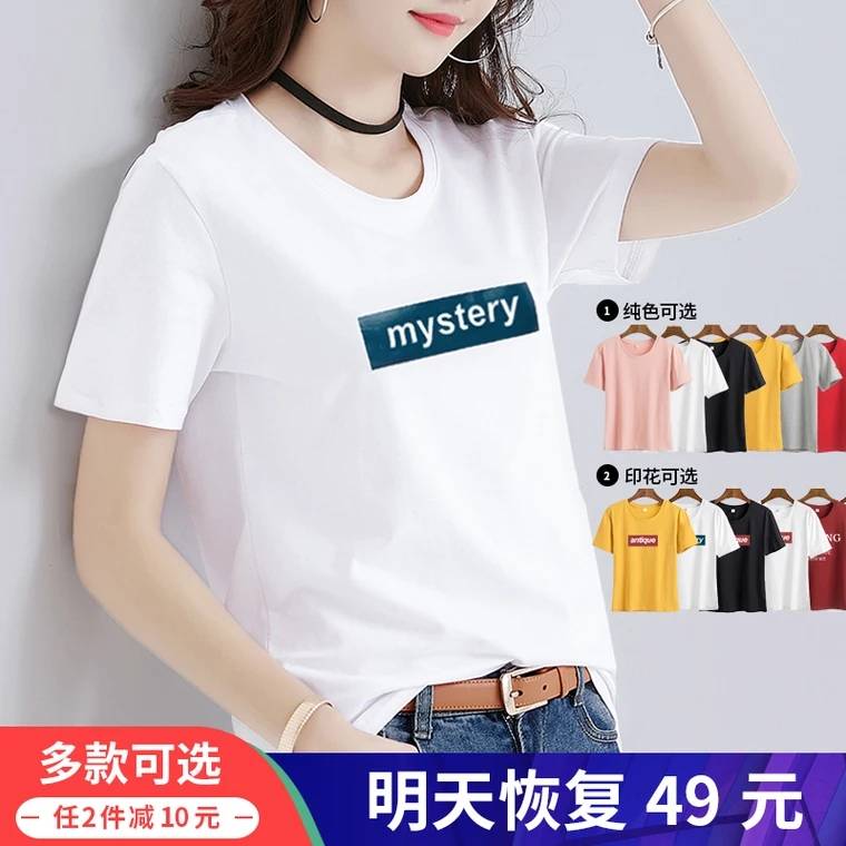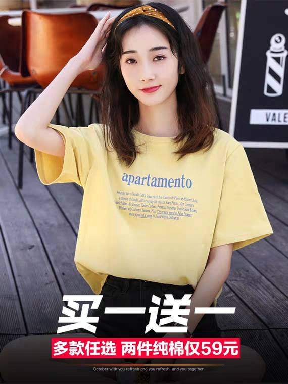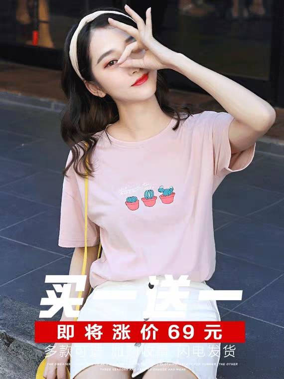 短袖2019新款春季t恤女宽松打底衫纯棉半袖女装夏装上衣服