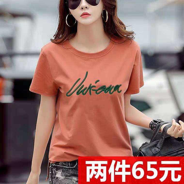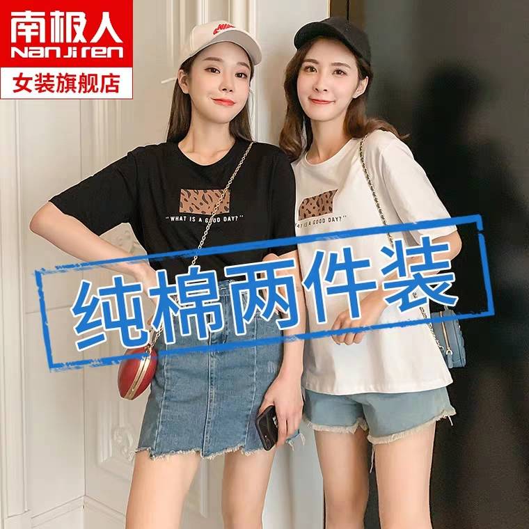 2件65元短袖t恤女夏装新款宽松纯棉韩版半袖体桖上衣女装丅恤衫