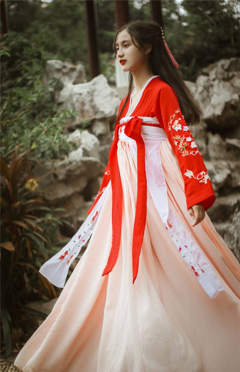 新款汉服国色芳华古风女齐胸对襟古典雪纺襦裙刺绣花学生日常仙女