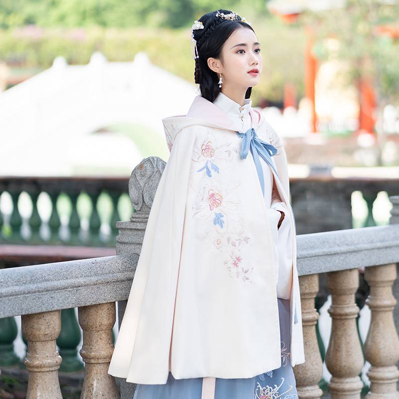 汉服女改良冬装中国风袄裙斗篷式披风加厚保暖古装学生古风日常装