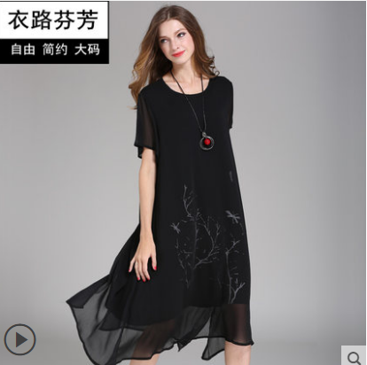加肥遮肉连衣裙胖mm大码中长款2018春夏季新款女装宽松雪纺长裙 168.00 已售:0件