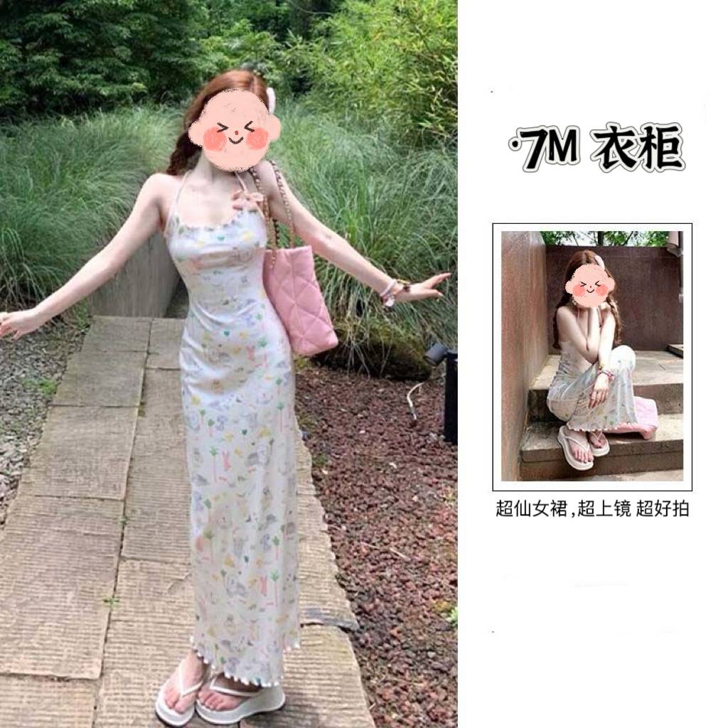 小众夏日海边碎花连衣裙2024款 超上镜