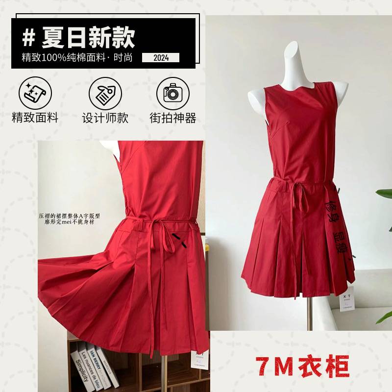 复古风格 大红短修身连衣裙 2024夏季新款