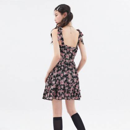 西遇商场同款碎花吊带连衣裙2022年夏新款设计感小众法式裙子公
