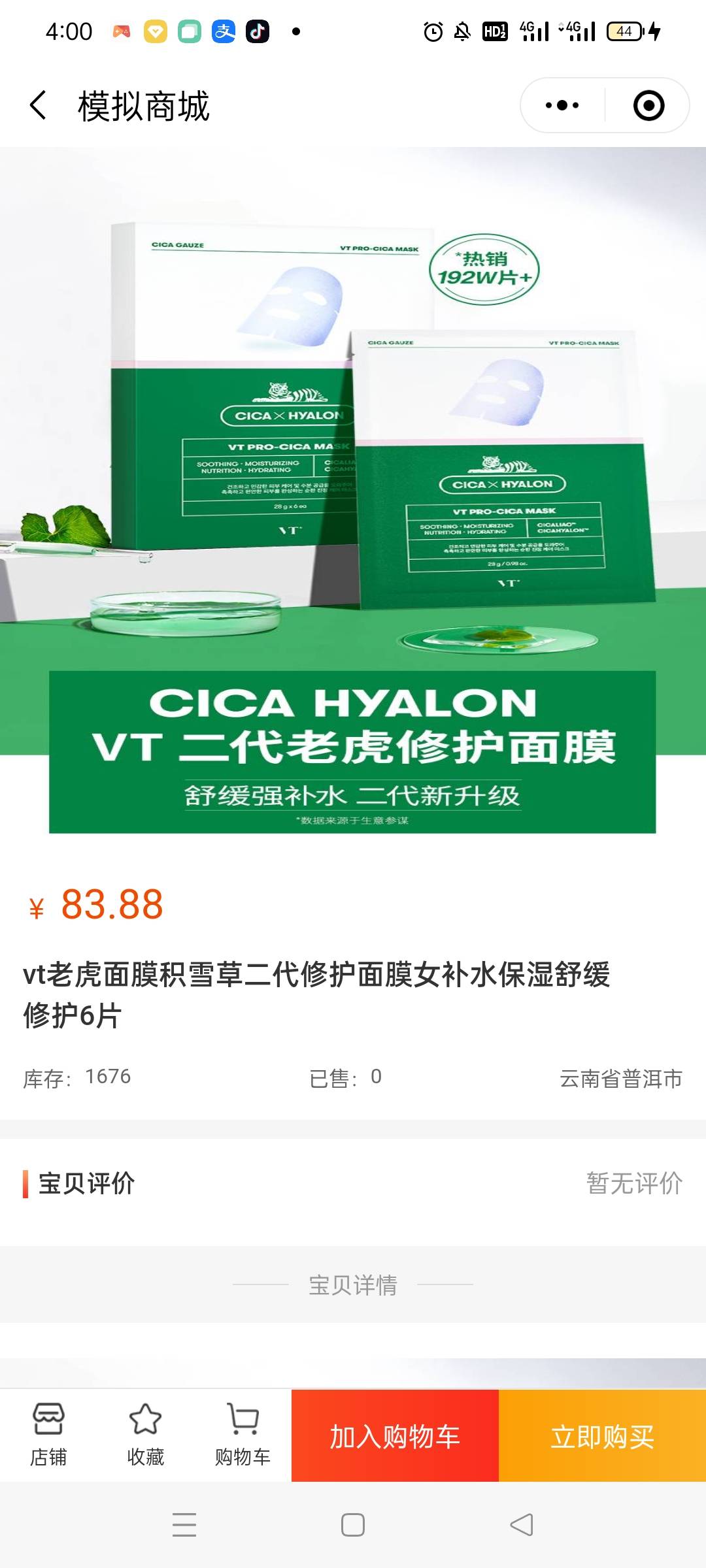 ¥83.88 vt老虎面膜积雪草二代修护面膜女补水保湿舒缓修护6片