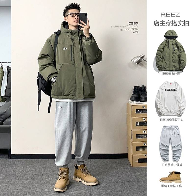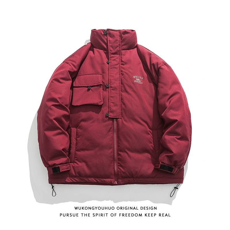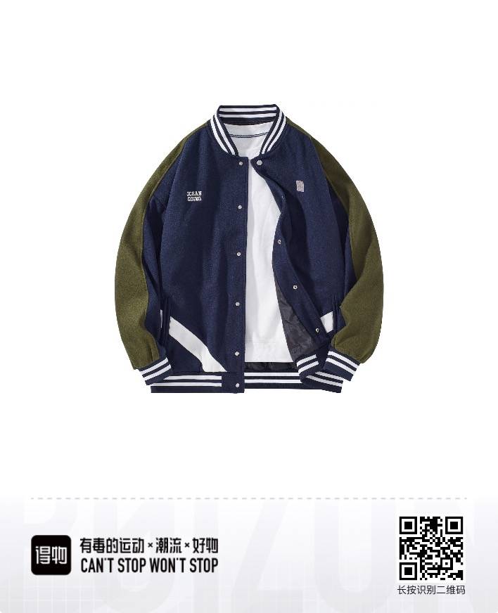 棒球服2022港风街头ins撞色拼接潮牌宽松情侣pu皮嘻哈夹克男羽绒棉