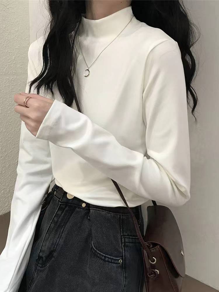 莫代尔小立领正肩打底衫女士内搭可外穿圆领长袖上衣t恤春秋冬季