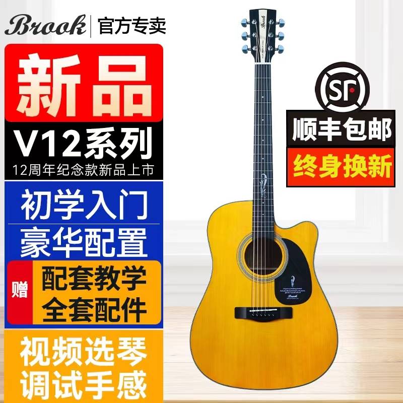 官方新品布鲁克吉他V12民谣面单板学生入门初学男女专用电箱吉它