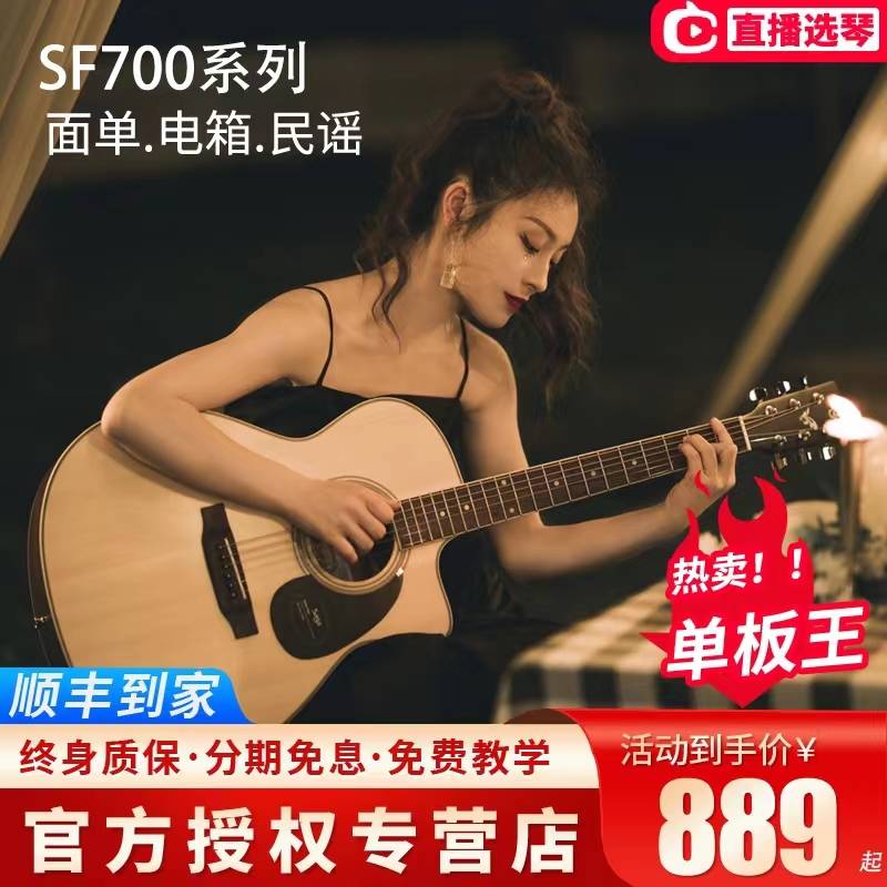 Saga sf700萨伽云杉单板民谣吉他初学入门面单学生男女41寸sf800