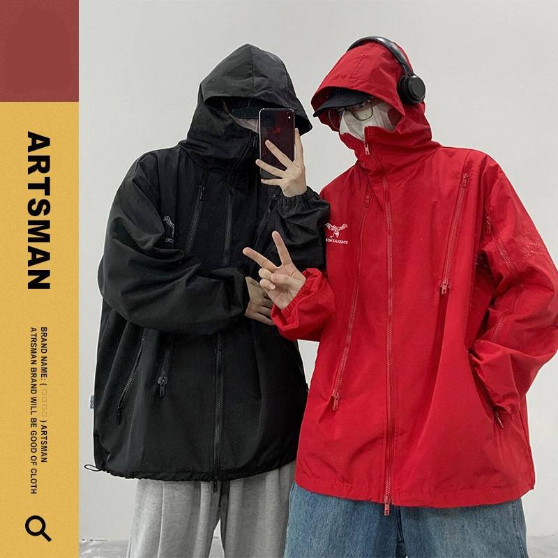 黑武士美式潮牌美式冲锋衣外套男秋冬新款宽松机能风工装连帽夹克