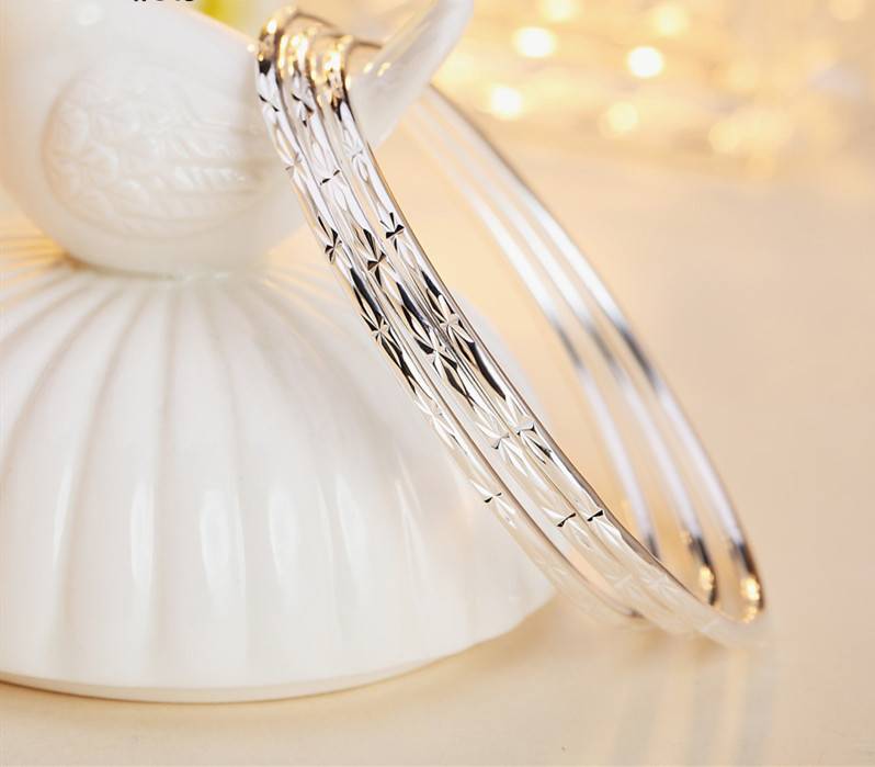 999纯银手镯女 满天星实心多圈三环韩版学生百搭闭口简约细手环子