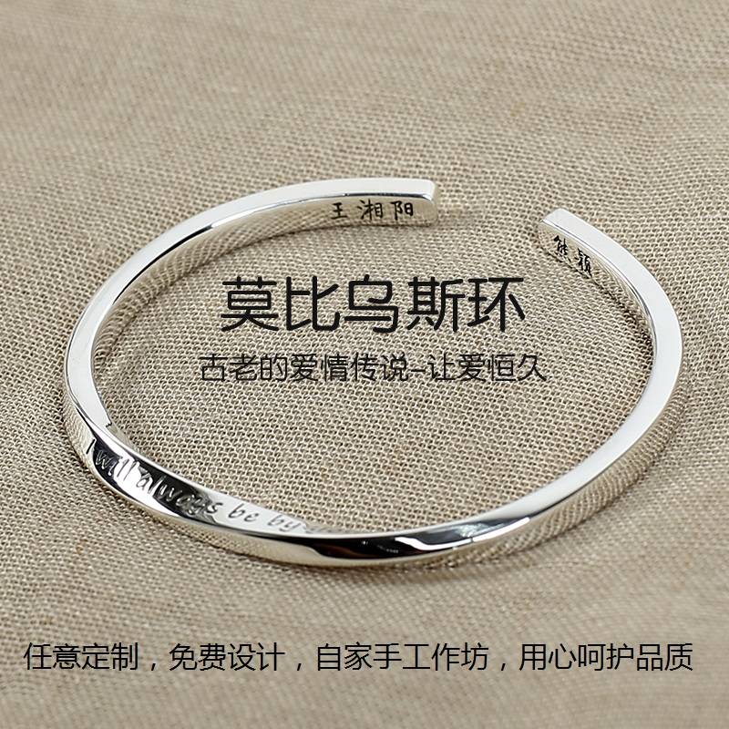 定制刻字999纯银莫比乌斯情侣手镯送男女朋友生日礼物女生手环
