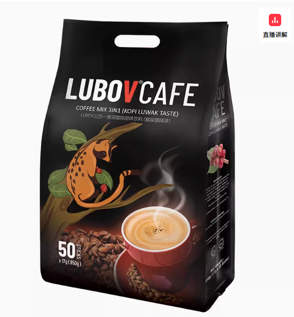 马来西亚原装进口猫屎咖啡味LUBOV琉鲍菲三合