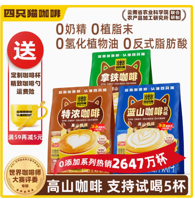 四只猫】咖啡 云南高山奶香拿铁风味三合一速溶咖啡热饮0植脂末