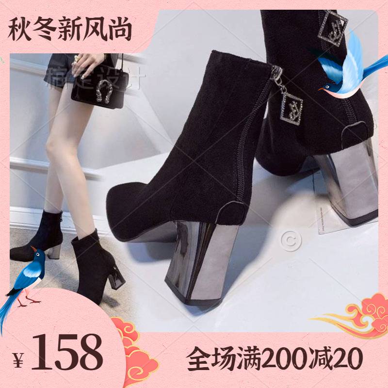 瘦瘦短靴女春秋款单靴子2020新款韩版高跟鞋粗跟马丁靴英伦风冬季