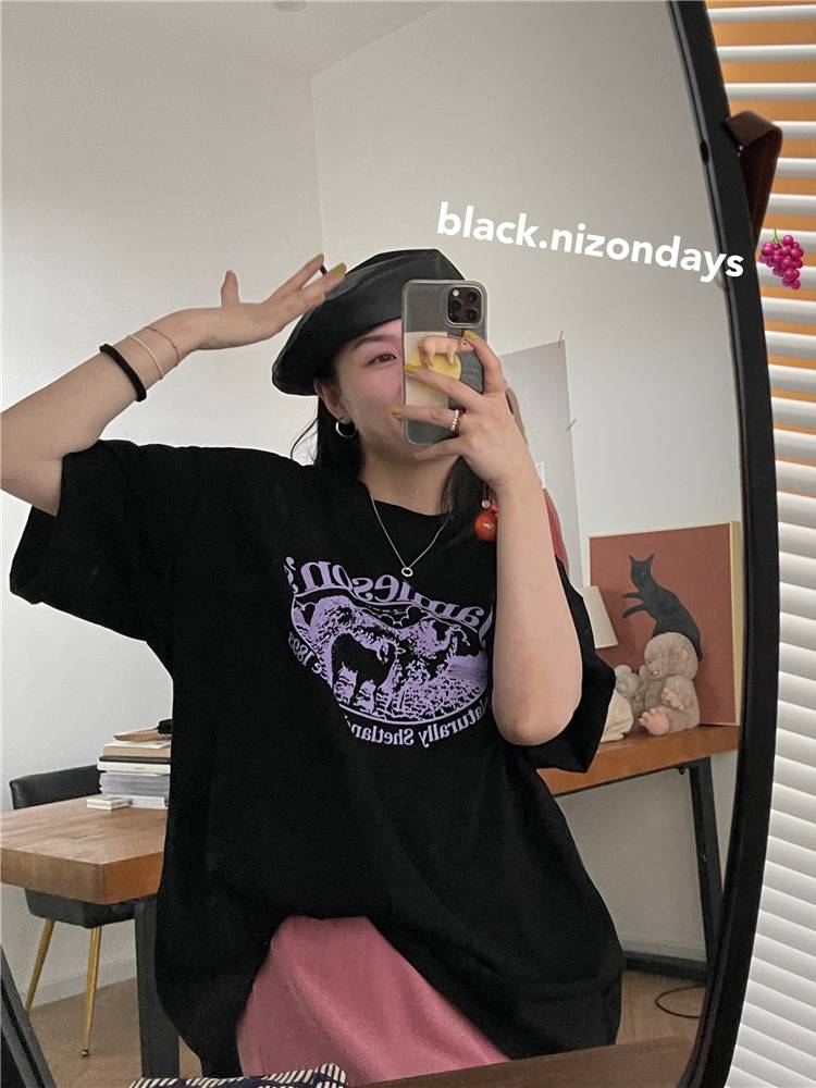 港风短袖t恤女宽松