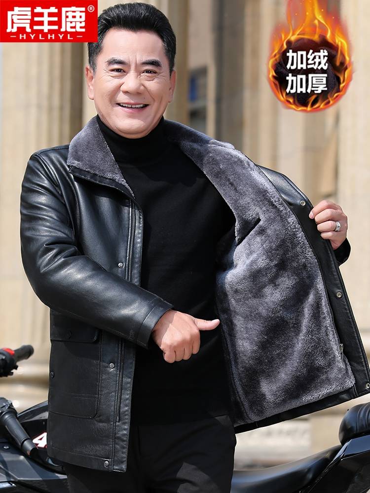 爸爸冬装皮衣男士皮毛一体外套男中老年加绒加厚皮夹克中年保暖衣 300.00 已售:0件