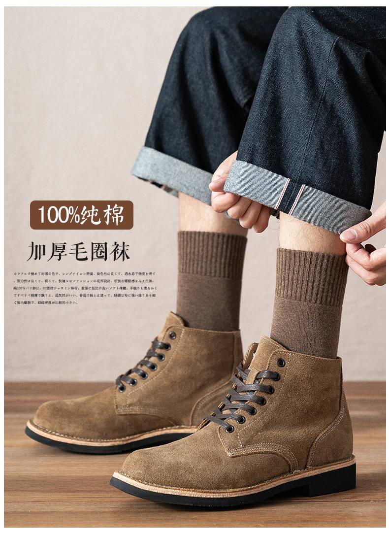 冬季保暖袜子男中筒袜纯棉加厚毛圈防臭吸汗冬天加绒毛圈男士长袜