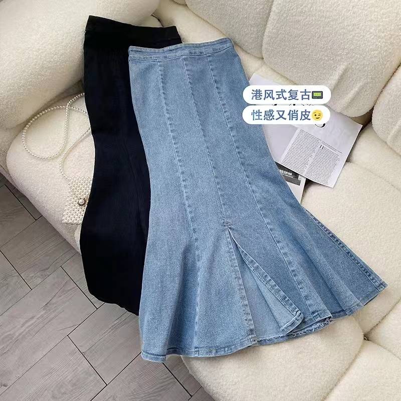 弹力牛仔鱼尾裙开叉半身裙2022年新款中长款包臀裙子小个子牛仔裙 27.80 已售:0件