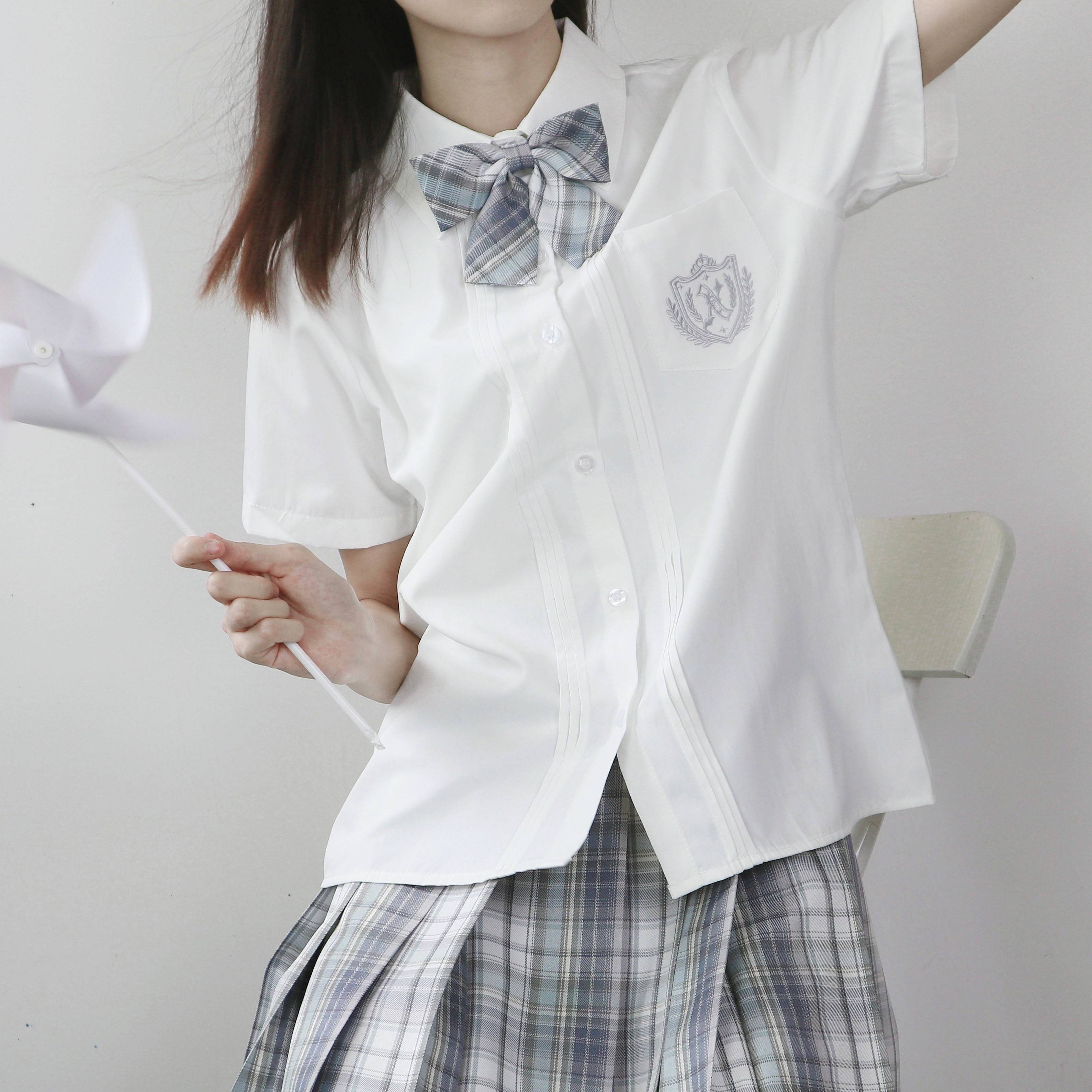 栗子蜜原创jk制服衬衫女短袖夏季衬衫刺绣学生衬衣奶白色