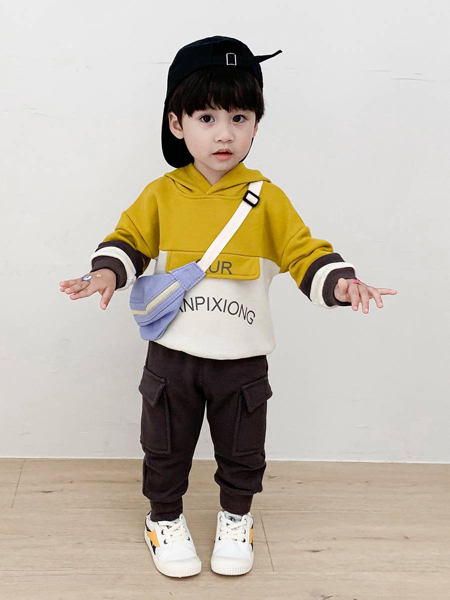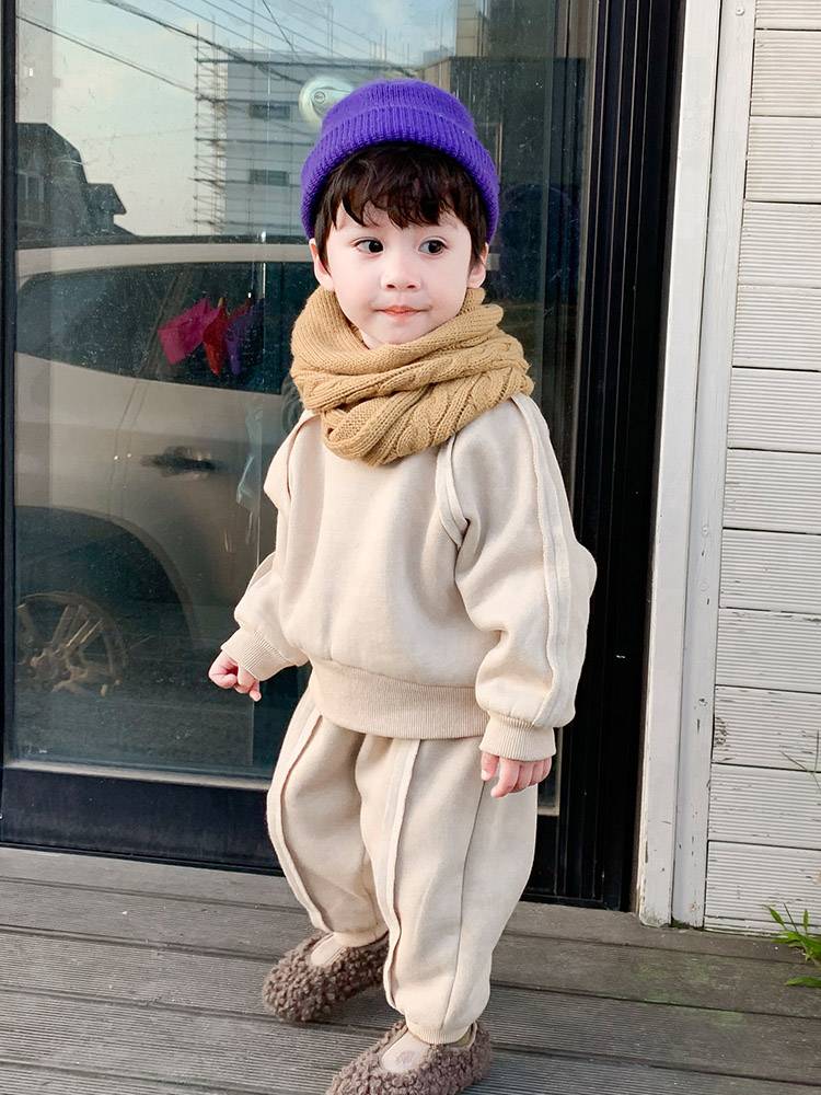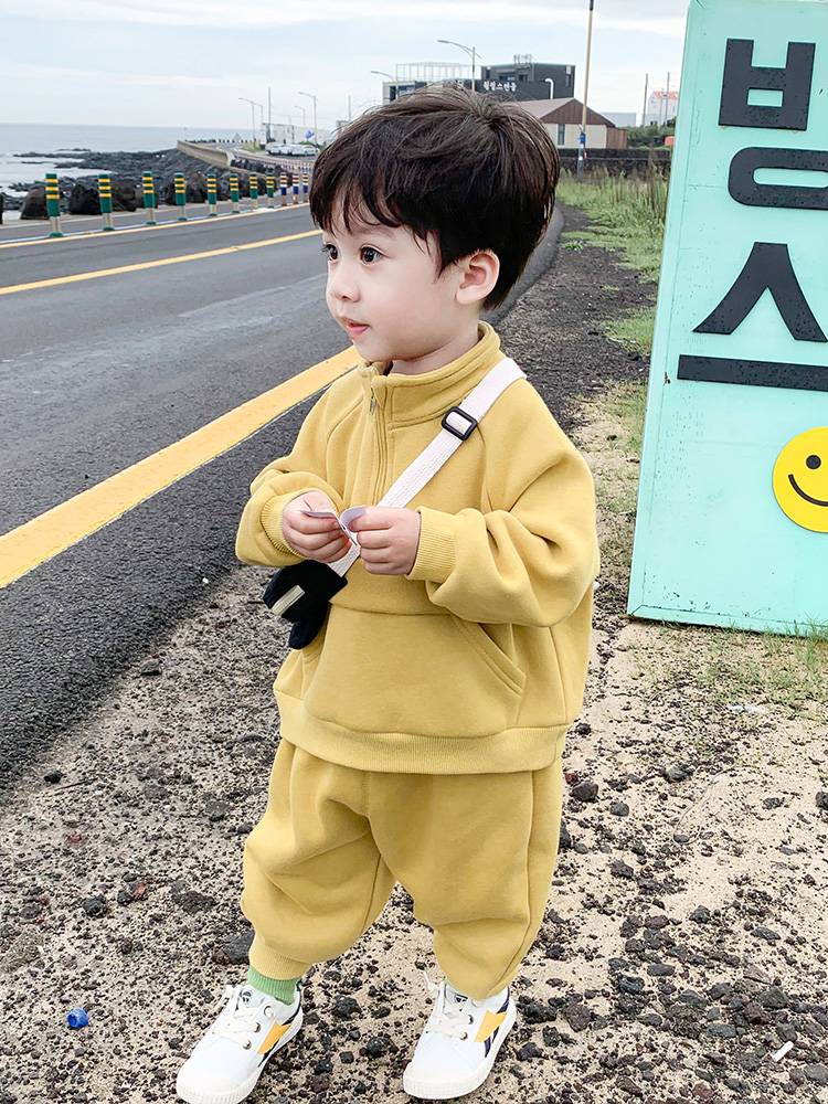 1儿童冬装男小童加绒加厚休闲两件套2019新款宝宝卫衣套装秋冬