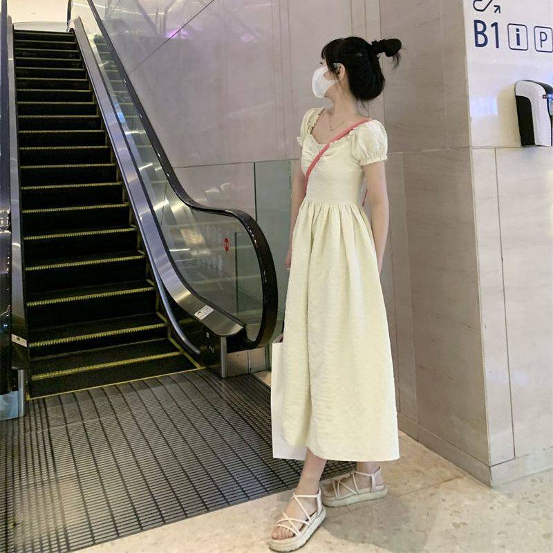 新品锈与骨 月光奶杏 裙子女夏季甜美风法式长裙仙气泡泡袖公主连衣裙