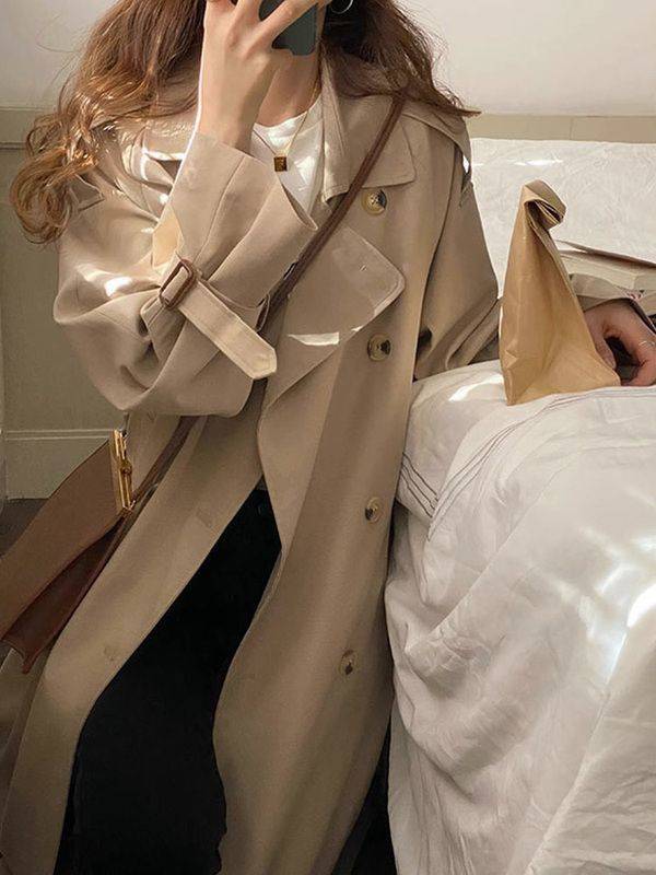 2019秋季新款品牌女装英伦气质纯色长袖西装领双排扣女式风衣外套