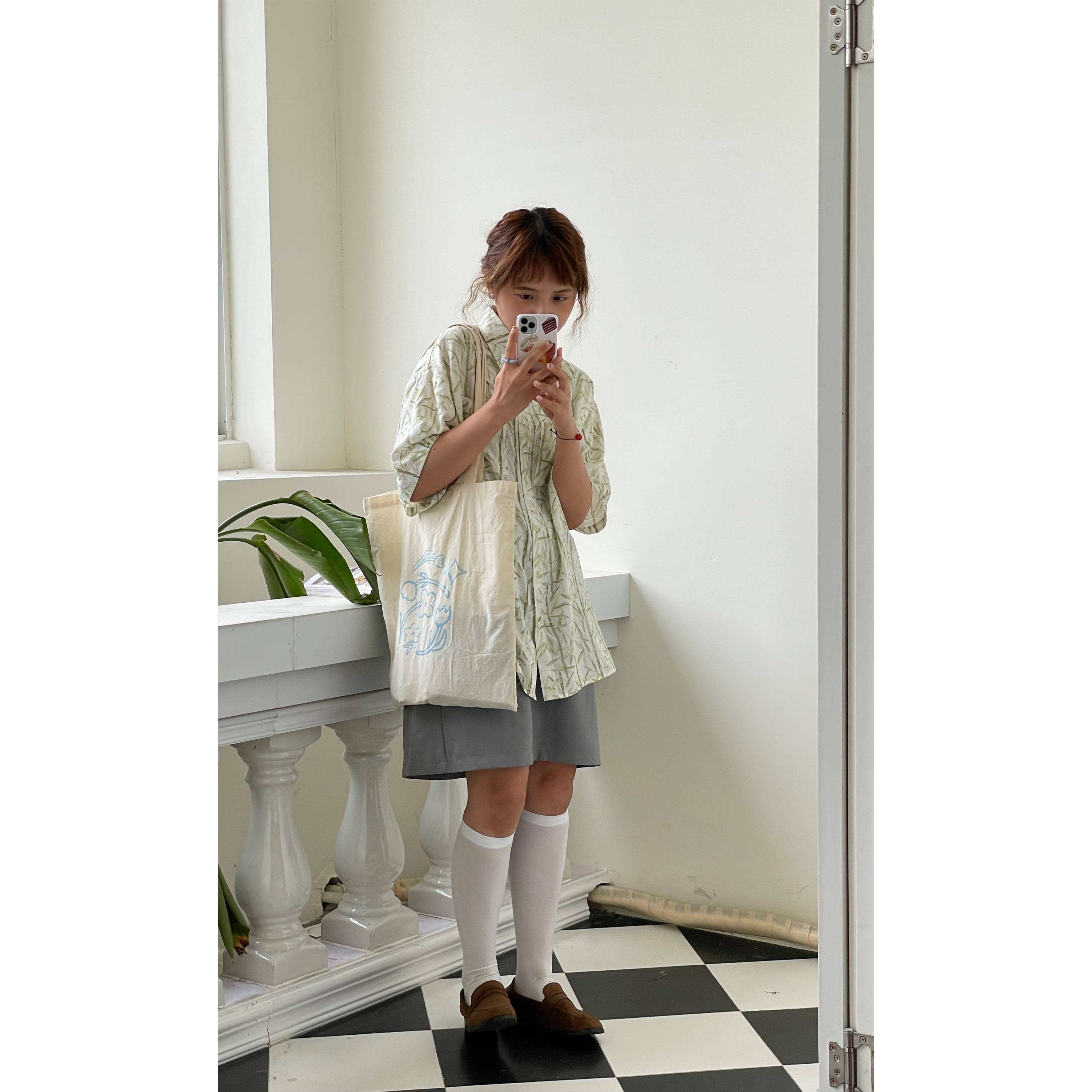 一嘴一口小志白色衬衫女宽松慵懒休闲上衣设计感小众夏新款短袖印花衬衣