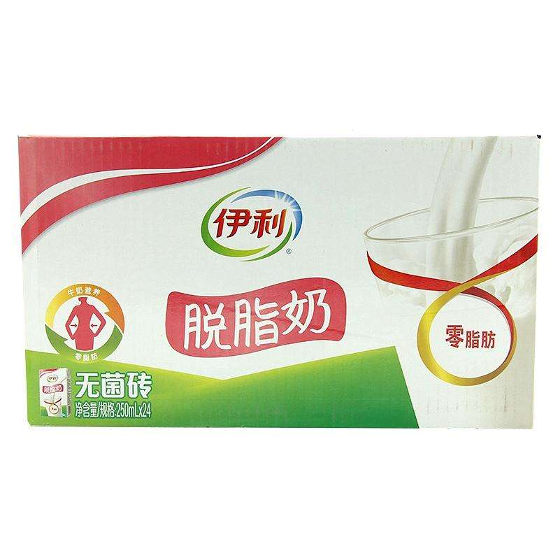 伊利脱脂牛奶250ml*24盒调制奶脱脂奶纯牛奶0脂肪