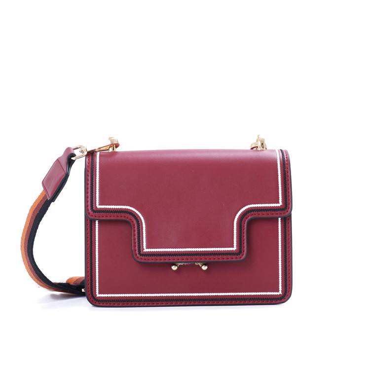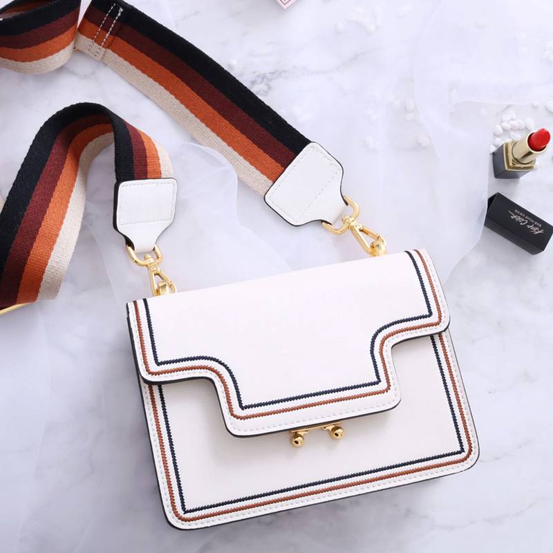 韩国简约风琴包女ins宽肩带复古撞色真皮女包百搭chic斜挎小方包