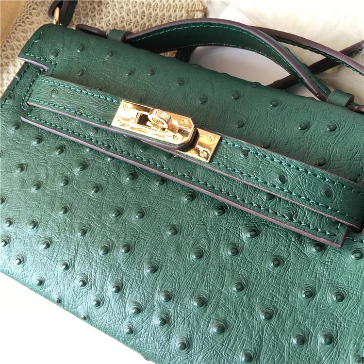超赞包2018新品森系鸵鸟纹凯莉真皮女包手包高档单肩斜挎牛皮小包