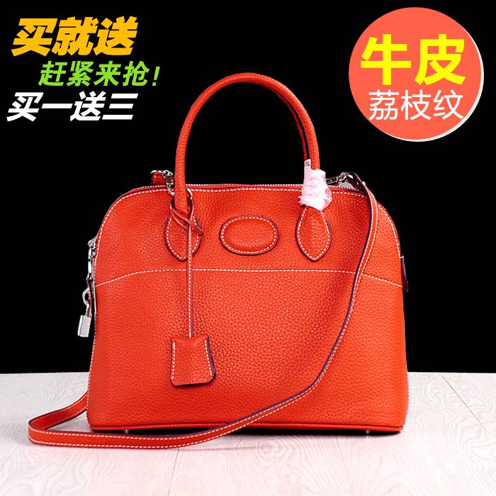 2018新款时尚头层牛皮女士手提包通勤真皮贝壳包单肩斜挎百搭女包