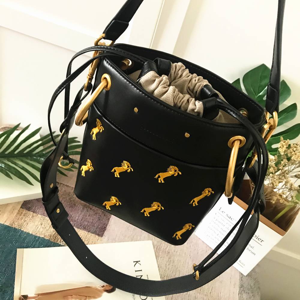 小马刺绣水桶包女2018秋冬新款单肩真皮女包简约百搭手提斜挎包包
