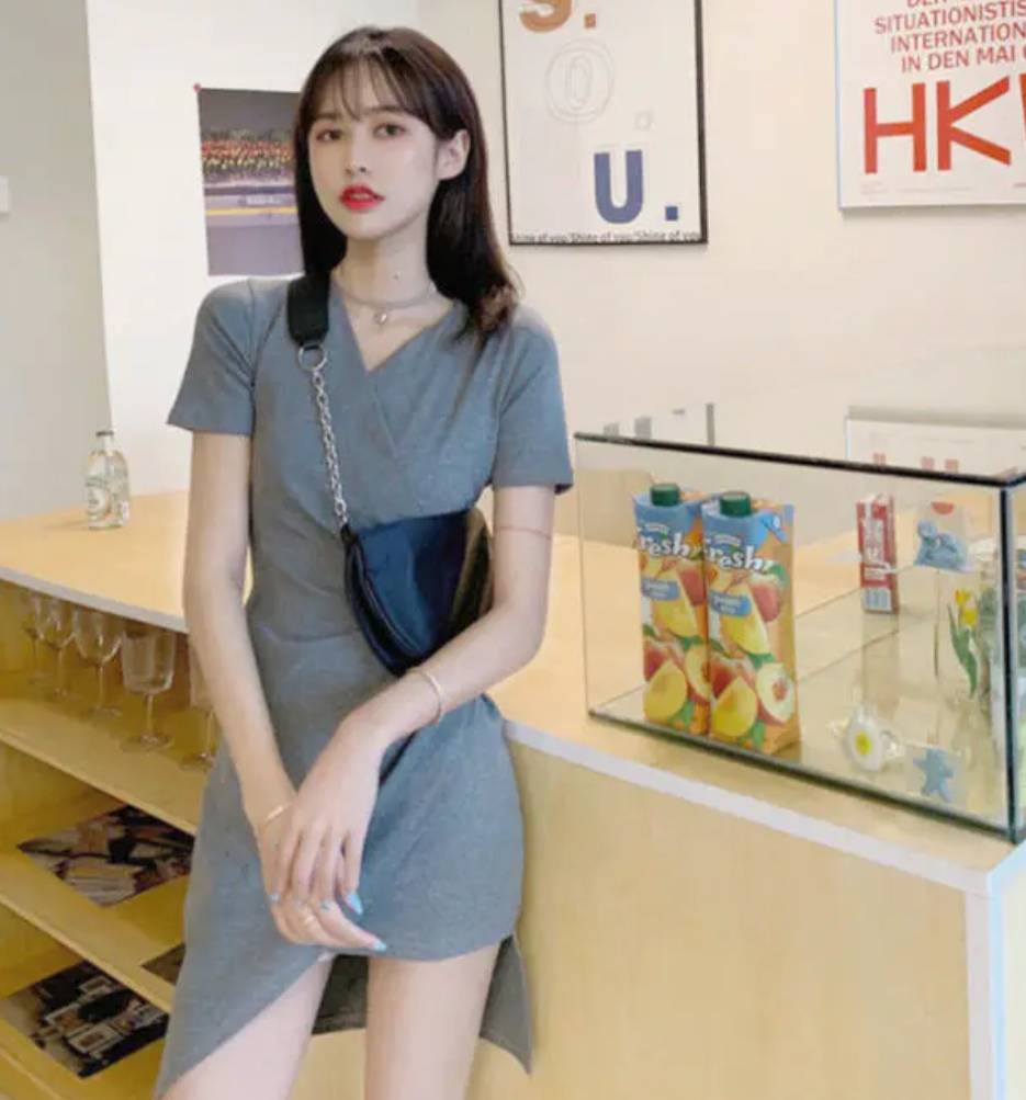 【不规则开叉短袖】韩系INS风心机显瘦显腿长修身内搭运动T恤