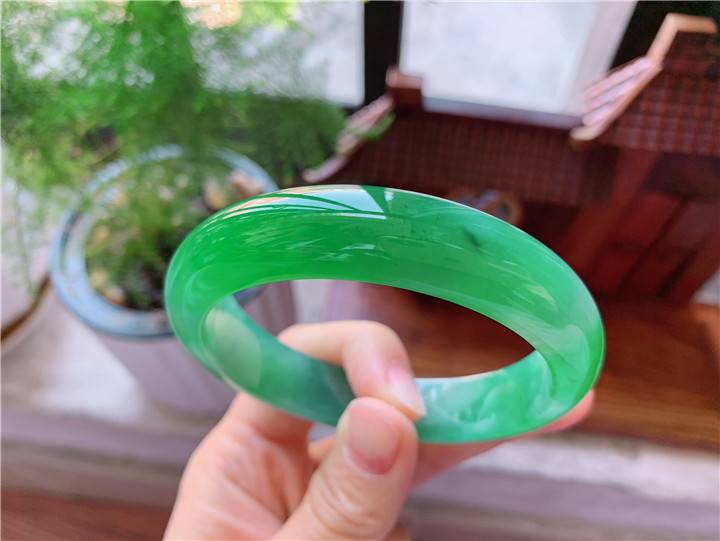 福翠玉珠宝老坑冰种起胶感帝王绿A货翡翠手镯