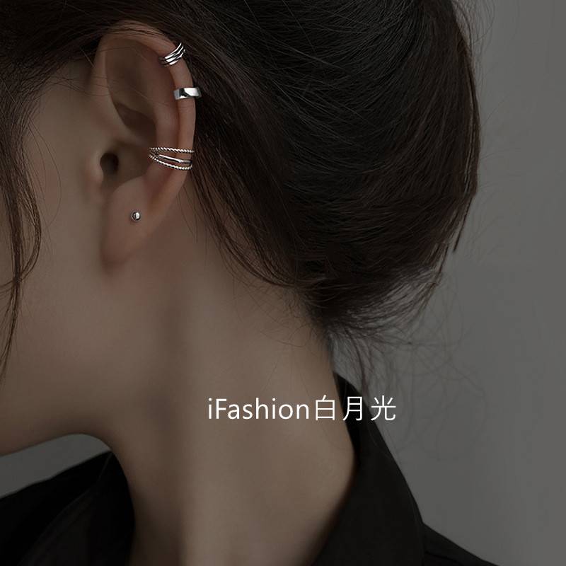 2022年新款潮白色耳夹气质韩版朋克编织麻花多层无耳洞耳骨夹
