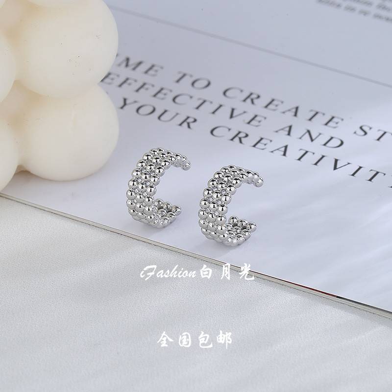 三层圆珠无耳洞耳夹女法式极简个性编织多层耳骨耳环