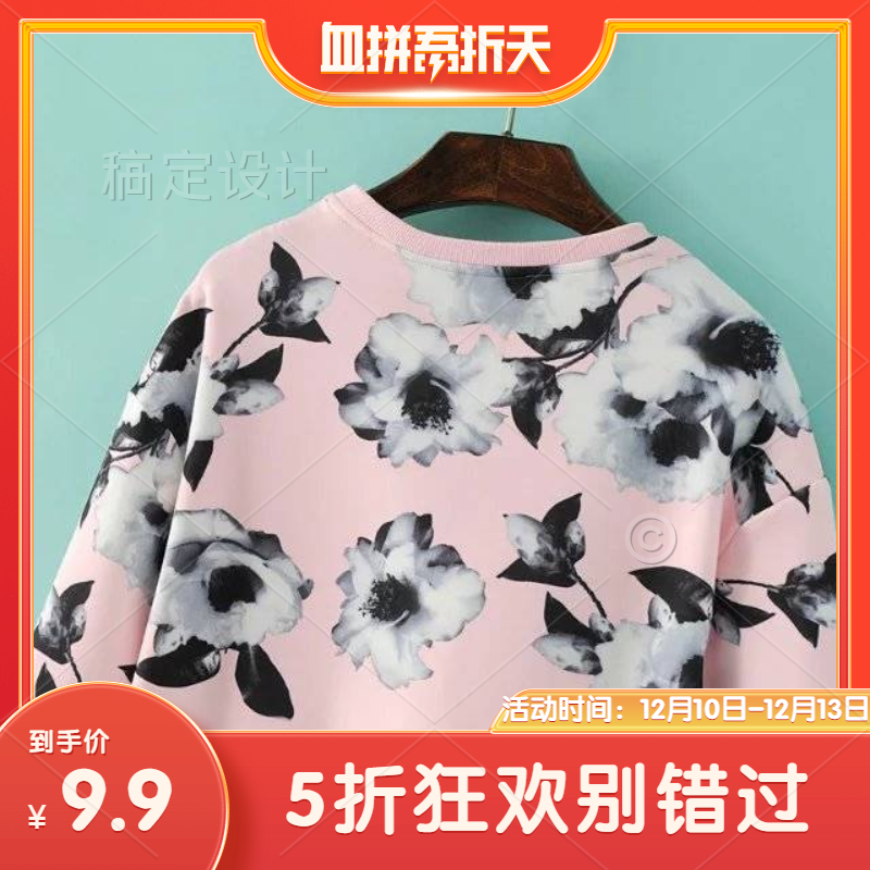 圆领卫衣女秋款加绒图案简约无帽上衣潮流复古百搭宽松外套