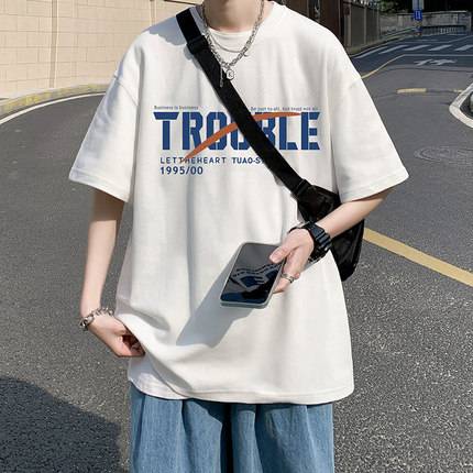 男生短袖t恤潮牌夏季设计感小众潮流ins正肩百搭纯棉宽松衣服体恤