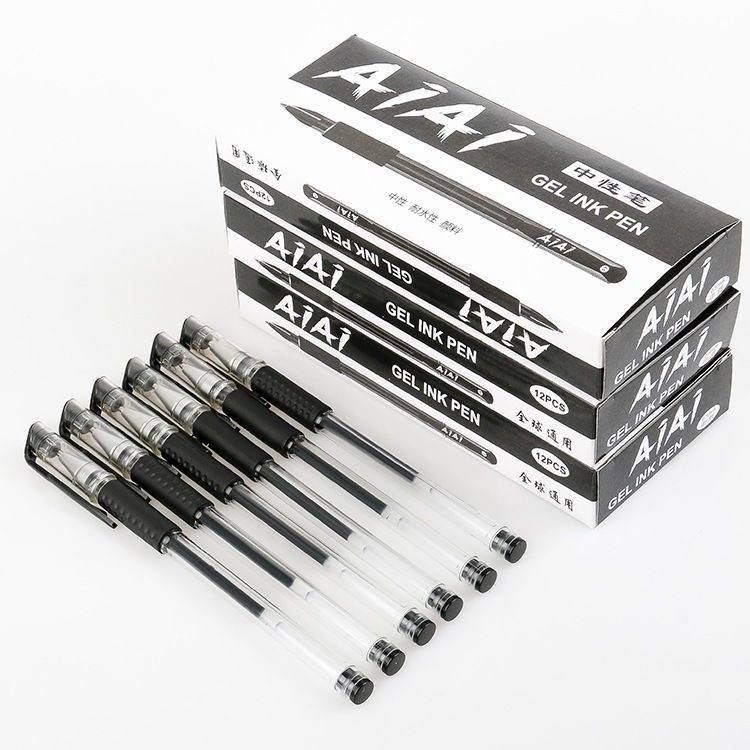 12支盒装欧标中性笔办公水性笔签字笔学生文具0.5mm子弹头中性笔