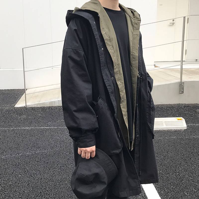 方寸先生2018秋季新款韩版宽松连帽风衣男中长款休闲外套潮流上衣