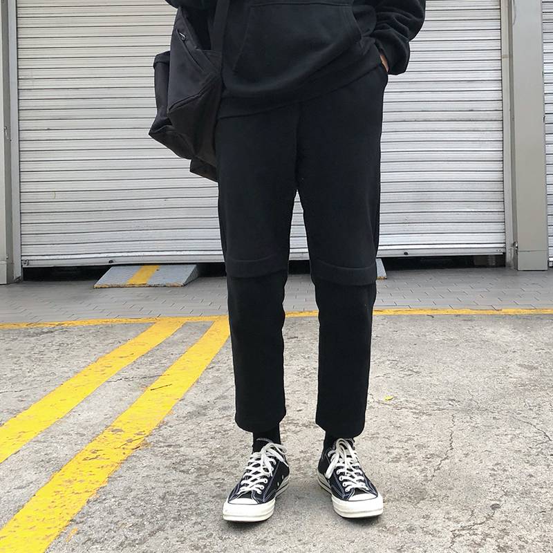 方寸先生冬季男士裤子加绒加厚韩版宽松潮流直筒黑色九分裤工装裤