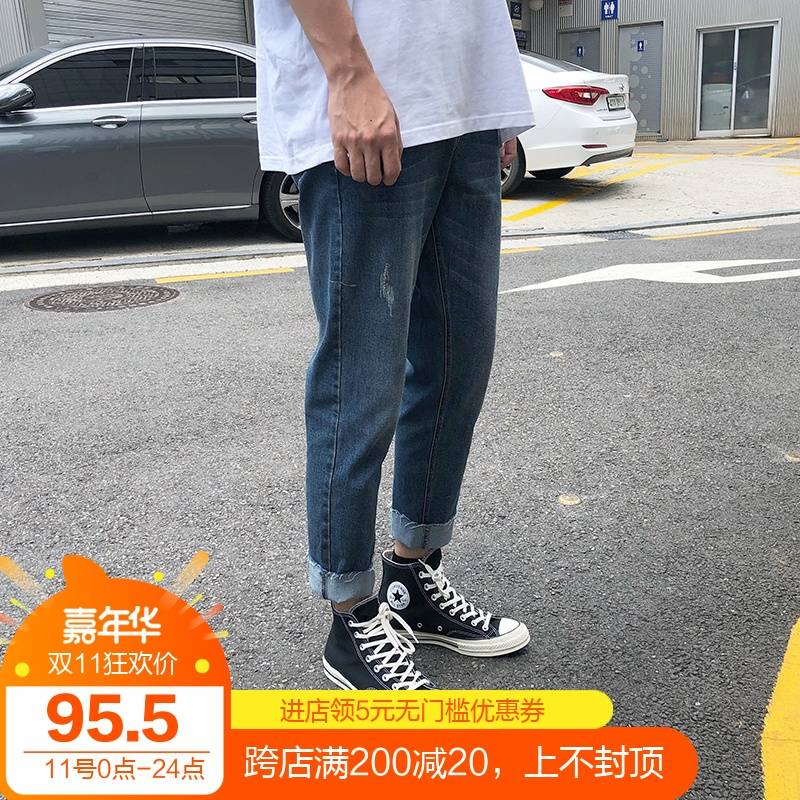 方寸先生2018新款秋季韩版潮流男士水洗直筒宽松九分裤休闲牛仔裤