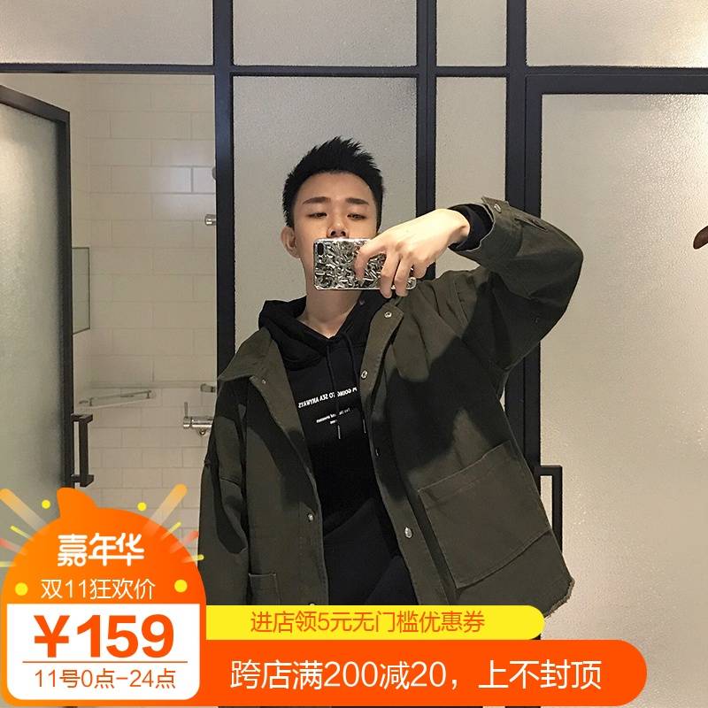 方寸先生男士秋季韩版宽松学生帅气军绿色牛仔外套网红上衣夹克潮