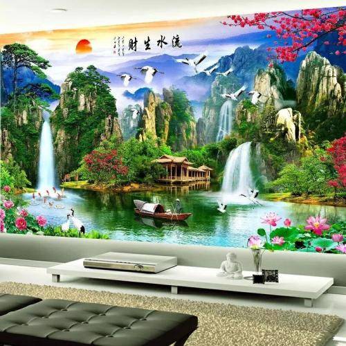 2018新款客厅纯手工大幅中国山水画十字绣线绣