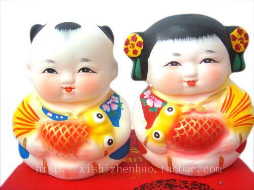 无锡惠山泥人泥娃娃精品 鸳鸯大阿福精品摆件