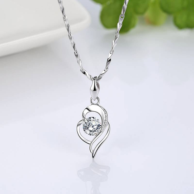 金六福S999纯银项链女森系心形吊坠简约锁骨链韩版银饰品生日礼物